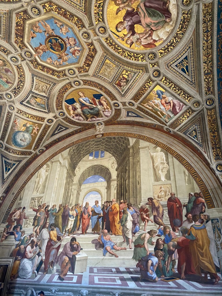 Ortaokulda vatandaşlık bilgisi dersi kitabından bildiğimiz Atina Okulu eserini, sanat kelimesini cümle içinde kullanmamış olanların bile bir şekilde karşılaştığı Adem’in yaratılışı resmini, ‘dur şurda bir soluklanır su alırız’ diye girdiğimiz yerde Roma’da o günlerde en çok konuşulan postmodern sergiyi gördükten sonra gezinin ruhuyla birazcık oynama hakkımız var tabii. Tarihten kaçıyoruz, çünkü o meşhur şiirdeki gibi kristalleşen zamanın içindeyiz. Meydanların meydanlara açılması gibi katmer katmer zaman. Ve o meydanları süsleyen heykeller kafir bir paganken dindar bir hristiyan oluveriyor; klasikken romantikleşiyor, durup dururken modern bir anlayış benimsiyor. Zaferle güç sarhoşluğu arasındaki çizginin üst üste binen taşlarla çizildiği aşılmış haddlerin etrafında gezinip duruyoruz.